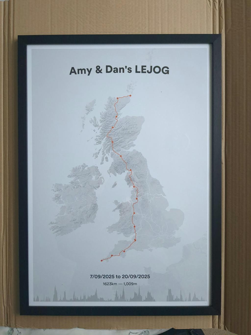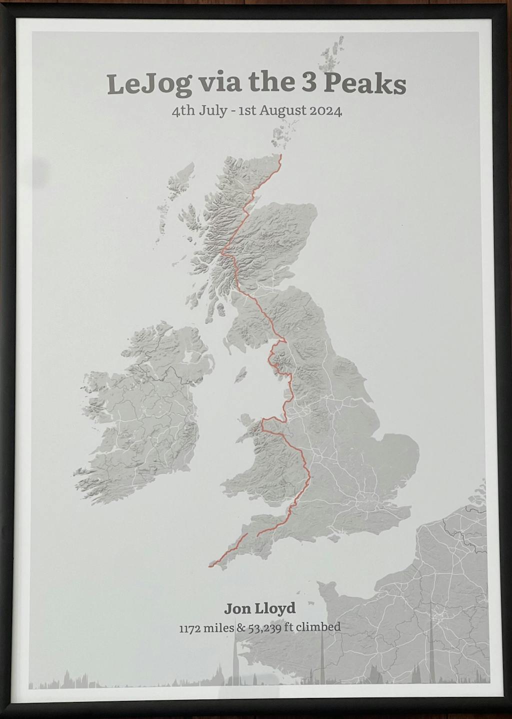I love my JOGLE poster. It’s a beautiful permanent reminder of my biggest sporting achievement to date. Thanks to Rob for helping me with changes to the text after submitting my order.