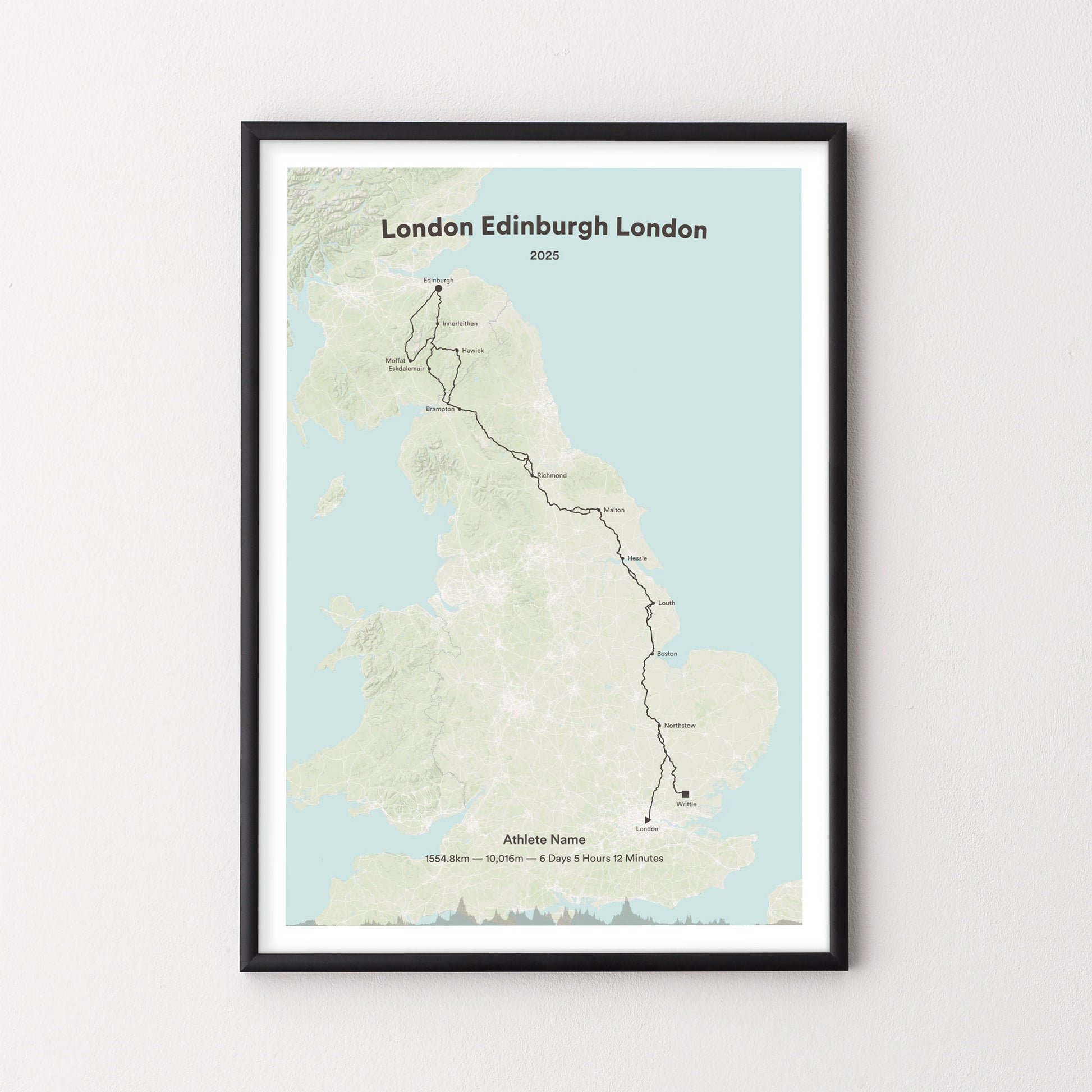 Celebrate Your London-Edinburgh-London Ride with a Custom Map Print